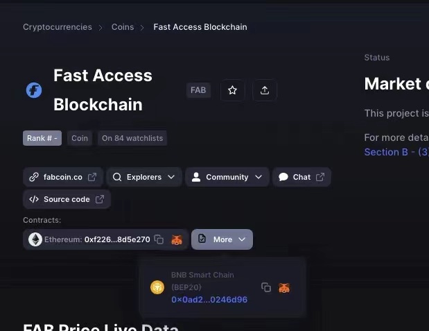 FAB公链原生币FAB现已通过CoinMarketCap收录https://coinmarketcap.com/currencies/fast-access-blockchain/