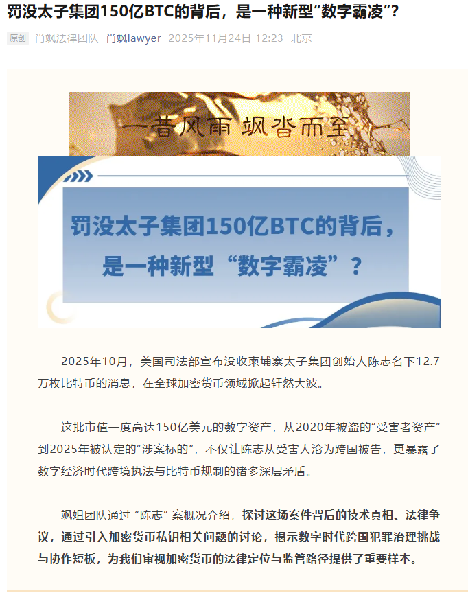 律师肖飒:美国罚没太子集团陈志150亿BTC的背后,是一种新型“数字霸凌”